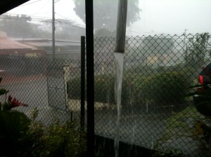 Oh, en om het eens over het weer te hebben, dat was vandaag zoals je hieronder kunt zien. Maar dan erger. Het leek potdorie de Zondvloed wel. Hield maar niet op. Gelukkig blijft het ook tijdens hoosbuien gewoon slipperweer.