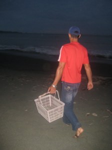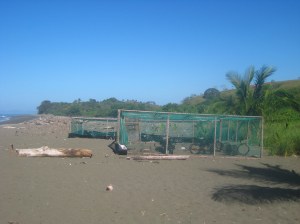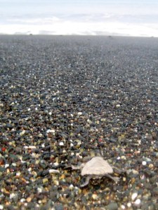 Vier dagen was ik in Malena, aan de westkust van het Azuero schiereiland…In het dorpje Malena staan zo’n 32 huizen en wonen tig, volledig biologische, kippen, koeien, paarden, varkens, biggetjes, iguana’s en natuurlijk, baby schildpadjes! In die vier dagen hielp ik honderdvijftig schildpadjes op weg naar hun eerste duik in de zee. Het zal tot twintig jaar duren voordat ze weer vin op land zetten en terugkeren in Malena om eieren te leggen, dan pas zijn ze volwassen. Helaas zullen de meeste de volwassenheid niet halen, de babyschildpadjes zijn een zeer gewild hapje en maar ongeveer 1% overleeft.