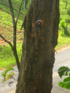 Tussen de schildpadden door beklom ik een waterval. Het nichtje van mijn familie klom, uiterst behendig, voorop. Ik kwam daar, net iets langzamer en minder behendig, achteraan. Regelmatig schoot de krantenkop ‘Nederlandse vrouw valt te pletter in Panamese rivier’ te binnen. Dit viel gelukkig mee en ik kon levend en wel douchen onder de waterval. Heel kort dan, ik heb het niet zo op koude douches. Verder bezocht ik de prachtige ecolodge en het herbebossingsproject Heliconia, keek ik naar de hoelahoepshows van huisgenootje Gaby en zag ik prachtige zonsondergangen. En maansopgangen.