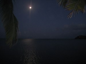 Was op voor dag en dauw. Maar zeer content met het plaatje dat dat opleverde. Zie de maan schijnt door de palmbomen.
