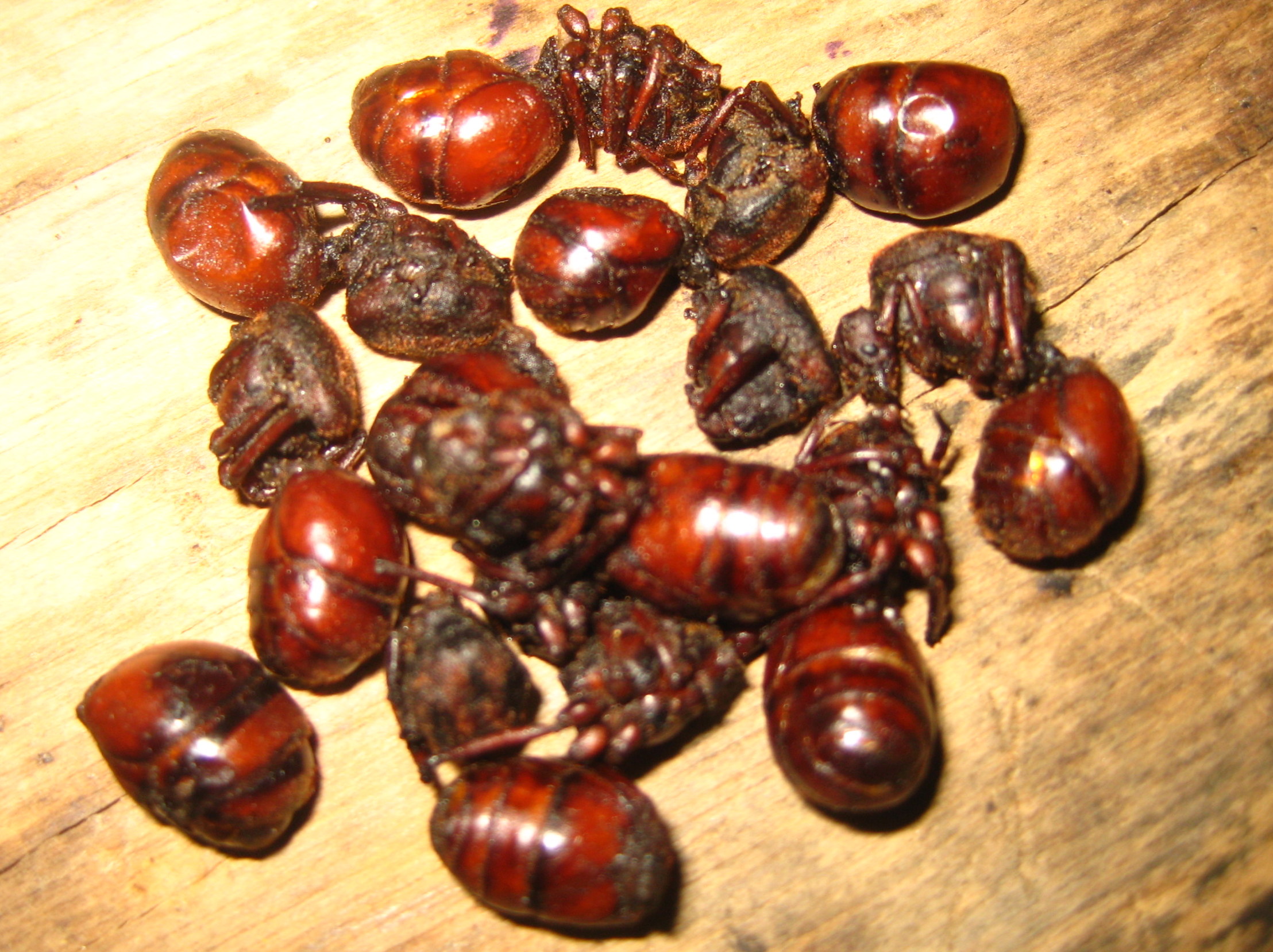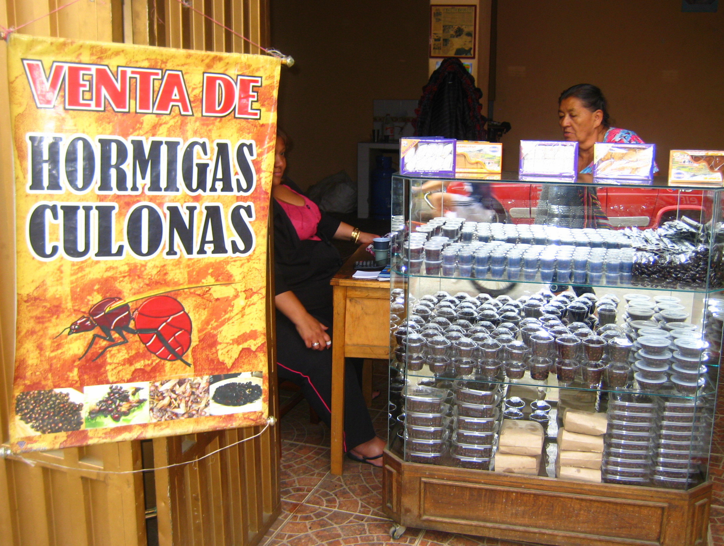 De mier in kwestie is de hormiga culona (Atta laevigata), vrij vertaald als de mier met dikke billen. Slechts eenmaal per jaar zijn deze mieren te vangen, als ze na een flinke regenbui op bruidsvlucht gaan. Duizenden mieren komen hun nest uit op zoek naar een nieuw onderkomen. De vleugels van de mieren hebben tijd nodig om te drogen en dit is de tijd om de koninginnen te verzamelen. Voorzichtig, want ze bijten flink.  De vleugels worden verwijderd, evenals de kop en de pootjes (als het goed is, de mieren op de foto’s hebben hun pootjes nog, en sommige zelfs hun kop). Vervolgens worden ze, nog altijd levend, even geweekt in zout water en geroosterd. Totdat ze goed knapperig zijn.