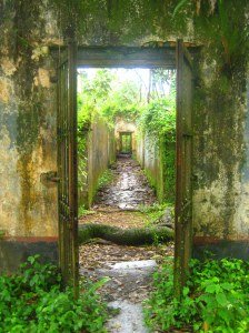 De gevangenisgebouwen zijn nu helemaal vervallen en overwoekerd door jungle. Apen, spinnen en agoeti’s zijn de belangrijkste bewoners. Moederziel alleen zwierf ik door het verlaten gevangeniscomplex op st. Joseph. Hoewel ik wist dat er op slechts een paar minuten afstand een catamaran vol feestende bezoekers en rum punch op me wachtte om me terug te brengen naar het vasteland gaf het een zeer onaangenaam gevoel.