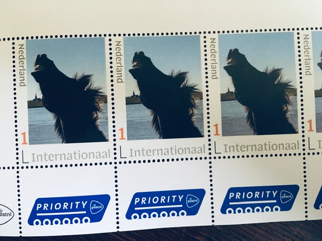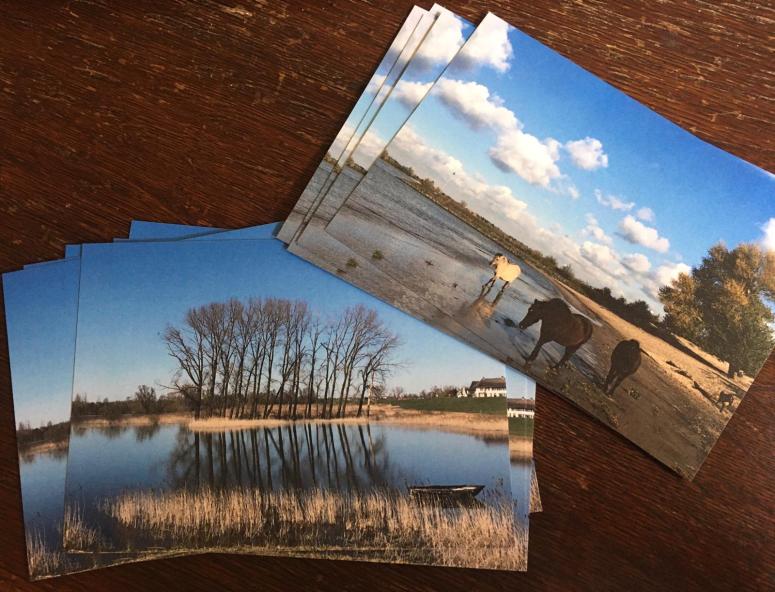 Omdat de mooiste plek op aarde natuurlijk Nijmegen is ging ik op zoek naar kaarten van Nijmegen. Dat bleek met de winkels dicht nog niet zo makkelijk, online was er helemaal niks te vinden! Toevallig kwam er net een commercieel kansje op m’n pad, ik kon een paar kaarten laten maken. Dat werden natuurlijk kaarten van de vele rondjes Ooij. Daar heb ik vervolgens ook nog matchende postzegels bij gemaakt (geld moet rollen, hashtag coronauitspatting), van een onderweg tegengekomen flemende konik. Die tien kaarten, vol lyrische woorden over de prachtige omgeving, verstuurde ik naar mijn tien volgende Postcrossing adressen, waarbij ik vroeg naar eigen wandelervaringen.