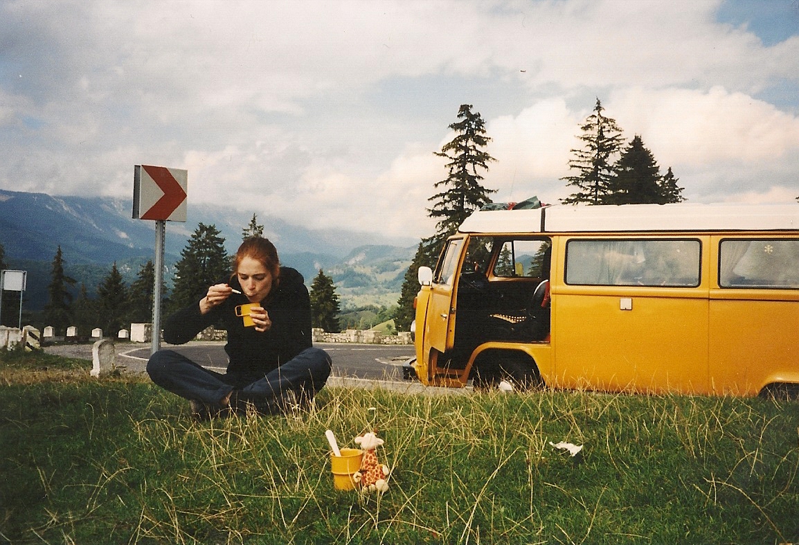 Er was eens een uiterst sympathiek marinogeel-met-groene-gordijntjes Volkswagenbusje, Rossinante genaamd. Rossinante ging op reis. En wij gingen mee.