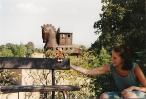 Ondertussen hebben we al heel wat gesightseed in Istanbul en heel wat minaretjes gezien. Erg mooi allemaal. Vooral Theo amuseert zich ook kostelijk met zijn paar woordjes Turks die hij te pas en te onpas gebruikt. Maar wat gebeurde er ook alweer allemaal voor Istanbul? Eh ja, we gingen dus richting Brasov in Roemenie. Daar stonden we een dagje en keken wat rond in de regen en de kou, slechts 10 graden was het daar opeens. We kabelbaanden een heuvel omhoog om het schitterende uitzicht te bewonderen, nevel en grijsheid. Verder zagen we nog wat middeleeuwse bouwsels waar heel Roemenie mee volstaat. Van Brasov reden we naar Bran, alwaar we ons in de efteling waanden. Kasteel zou dus iets met Dracula te maken moeten hebben maar doet het eigenlijk niet. Geeft niks, toch erg mooi en de efteling heeft er duidelijk inspiratie uit gehaald. Daarna midden door de Karpaten gereden en bovenop nog gestopt bij een mannetje met paard en wagen en kaas. Een heuse Roemeense kaas gekocht waar onze koelkast nu nog altijd naar stinkt. Toen we weer uit de Karpaten kwamen rollen waren we zo’n beetje in Boekarest. We parkeerden Rossinante voor de nachtrust en bleken zo’n beetje in de tuin van het paleis van Ceausescu te staan. Ongelooflijk groot gebouw, moest ook het grootste van Europa zijn. Twas in ieder geval een typisch geval van grootheidswaanzin van die meneer. Van Boekarest verder eigenlijk weinig gezien, hele grote, hele drukke stad. Oh ja, daar bleken opeens mijn (susan) teva’s gesmolten te zijn! Grote ramp, maar het bleek gelukkig toch nog redelijk mee te vallen, ik kan er nog goed op lopen. Oorzaak van smelting onbekend, iets in het busje in ieder geval. Ok, na bekomen te zijn van deze ramp ging de reis verder richting Bulgaarse grens. Dat was nog een hele toestand, moesten langs allerlei mannetjes die beweerden iets van belasting te moeten innen. Het was duidelijk één grote maffia daar, maar we moesten erdoor dus konden er erg weinig tegen beginnen. Na een lange lange onderhandeling waren we uiteindelijk nog de 25 gulden en al ons Roemeens kleingeld kwijt. En mijn zoutjes, die ik maar had afgegeven aan een vrouwtje met 1 tand die aan mijn raampje gekleefd bleef zitten.