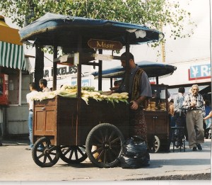 De bovenstaande tekst is alweer drie dagen oud. Uiteindelijk lukte het ons niet om het verslag in Constantinopel op het net te plaatsen. Daarom proberen we het vandaag nog eens, in een mega winkelcentrum langs de weg in Silivri. We zijn op de Dardanellen aan het afstevenen. Nadat we die zijn overgestoken houden we halt in of in de buurt van Troje. Daar hopen we een paar dagen van Turken, de zee en de rust te genieten. En zeker ook van de heerlijke hapjes die op straat te krijgen zijn. Zo ontzettend simpel maar toch zo lekker. Bijvoorbeeld geroosterde maiskolven en gepofte kastanjes. Het echte uit gaan eten is wat moeilijker. Vegetarisch eten bestaat amper en als je het probeert uit te leggen gaat het meestal mis en bestaat je avondmaal uit een schoteltje rijst. Ach ja, we kunnen gelukkig zelf koken en vullen de vitamientjes dus regelmatig aan door grote blikken groente op te warmen. Anyway, Turkije en de Turken zijn erg aangenaam. Hoe anders dan Roemenie en Bulgarije. Niet dat we daar niet genoten hebben. Het landschap is prachtig en totaal niet grauw zoals we het eigenlijk toch een beetje verwacht hadden, en (en dat geldt ook nog voor Turkije) het is een paradijs voor dierenliefhebbers. Overal krijgen we er tijdelijke huisdieren bij, heel gezellig, iets minder gezellig zijn de vele platgereden huisdieren op de weg helaas. Maar wat mensenbevolking betreft is men er duidelijk minder empathisch, in eerste instantie althans en ten opzichte van vreemden. Misschien komt het door de onbekendheid met toeristen, met de taal die deze vreemden spreken en met de onhandigheid met het geld dat deze zelfde toeristen tentoonspreiden. De taal is zeker een grote barriere, Engels spreekt men nagenoeg niet, ook niet in de fraaie steden en de kennis van het Duits is tanende. Vragen die je stelt worden als een last gezien, zo lijkt het soms. Een enkele keer werd echt omzichtig doorgepraat met alle ledematen en met alle hartelijkheid die je je kunt voorstellen. Dat was fantastisch. Verstaan of begrijpen deden we het niet, maar je maakt contact, lacht, bedankt, en praat gewoon in het Nederlands terug. Wat maakt het uit? Op de Bulgaarse camping in Varna bleken we zodoende een tuinset besteld te hebben, inclusief geruit tafellaken. Heel handig. De douche daarentegen hebben we helaas nooit gevonden. Pas hier in Turkije komen de internationale interacties echt op gang. Turkije is in dit deel ook wel erg Westers, dat zal zeker meespelen. Maar de gastvrijheid en beleefdheid is heerlijk, in het geheel niet opdringerig, gewoon eerlijk en persoonlijk. Ook op straat en ook van diegenen die je iets willen verkopen. Wil je niets hebben? Yok probleem en nog een fijne middag. Hopelijk blijft het zo, Nederland kan er nog een puntje aan zuigen.