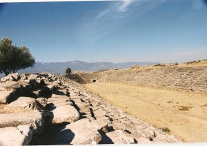 Daags erna brachten we een bezoek aan het klassieke Troje; indrukwekkend veel stenen en tegen de waarschuwingen van de Lonely Planet in zeker het bezoeken waard. Je kon het wapengekletter van Hektor en Achilles nog horen op de winderige heuvel. ’s Avonds arriveerden we in Assos, een andere steenoude stad. Aristoteles heeft er nog drie zomers lang vertoefd. De aankomst was spectaculair: na een scherpe klim en een net zo scherpe afdaling werden we dwars over een restaurantterras gestuurd richting mini-mini camping met precies genoeg plek voor één busje. Assos is een prachtig vissersplaatsje aan de Egeische zee, en we bleven er dus ook een dagje relaxen aant water. Alleen schijnt het sterftecijfer onder obers er nogal hoog te zijn. Twee dagen later, op de 22ste, vertrokken we weer uit Assos, een beetje bruiner van zon, zee en zout. Nadat we de ruines van het plaatsje hadden bewonderd zetten we koers naar Bergama. In die stad, ook bekend als Pergamum, wilden we de befaamde restanten bezoeken van haar bloeitijd als één van de belangrijkste plaatsen van het vroeg-Romeinse rijk. Vroeg zouden we opstaan om de vele oudheden te bezoeken. De camping die we vonden leek gelukkig te voorzien in een onbezorgde nachtrust. Wat jammer dat diezelfde camping vanaf 10 uur zowel parkeerplaats als feestterrein bleek te zijn voor een gigantische bruiloft. Om 2 uur lagen we nog naar ons plafonnetje te koekeloeren. Opeens was het feestgedruis voobij en even later was het ochtend. Pergamum , ’s anderendaags was indrukwekkend met haar tempel, theater & asclepion, en een Rode Basiliek uit latere eeuwen.